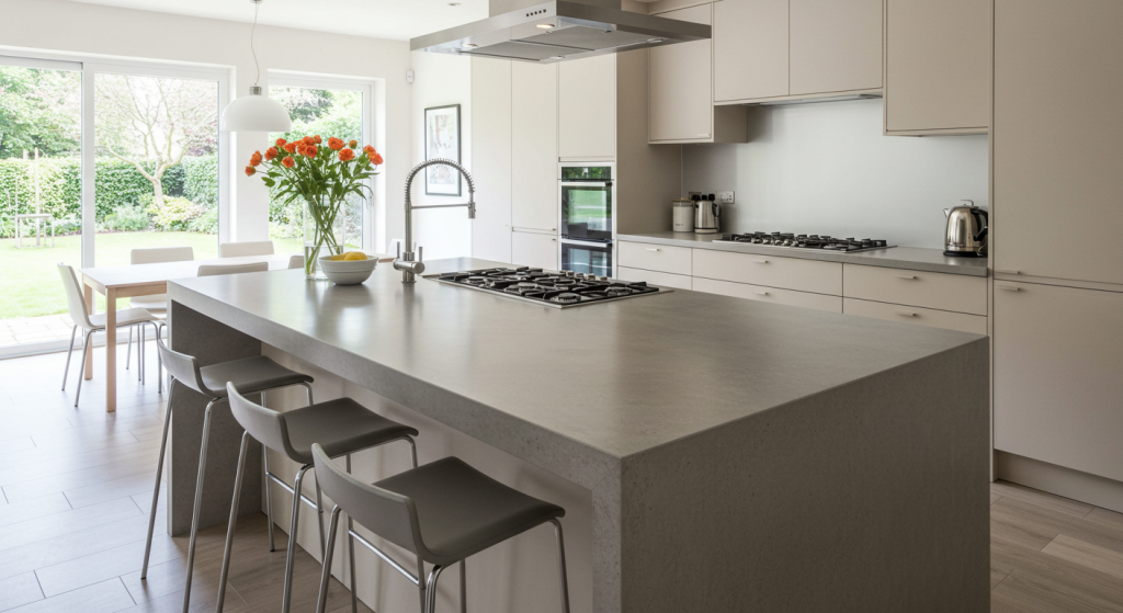 Водостойкое покрытие из микроцемента является оптимальным вариантом отделки влажных зон (кухонь, ванных комнат, душевых) с точки зрения как гидроизоляции, так и гигиеничности помещения.