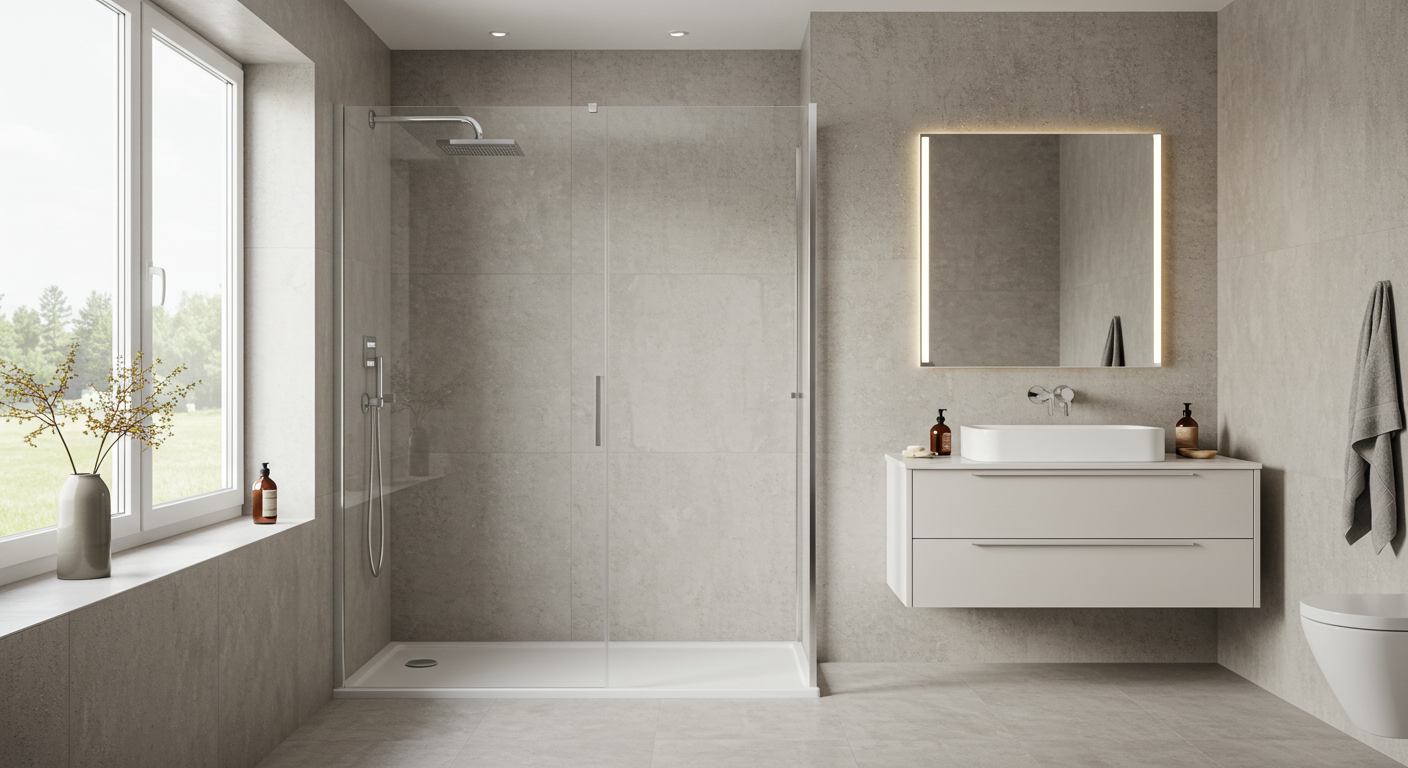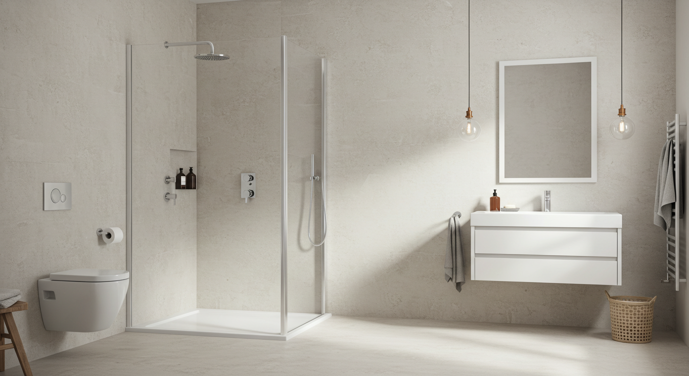Сегодня тренд на минимализм и целостность интерьера все чаще воплощается в ванных комнатах и душевых зонах. Особой популярностью пользуется бесшовная отделка душевой — современное решение, которое объединяет эстетику и практичность. Компания DECORLUX разрабатывает и производит влагостойкий микроцемент, идеально подходящий для любых помещений с повышенной влажностью, к числу которых относятся и душевые.